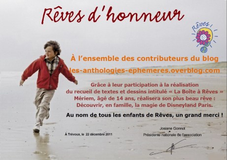 Grâce aux bénéfices du recueil « La boîte à rêves« , le rêve de Meriem, enfant gravement malade, va se réaliser.