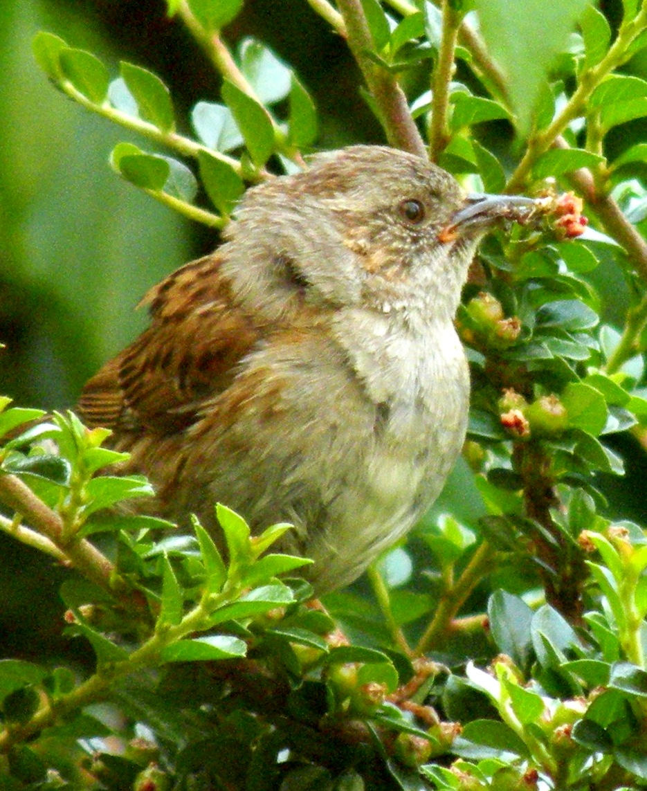 L’accenteur est presque aussi familier que le moineau, mais plus vif, plus rapide et qui se cache plus souvent. C’est un oiseau commun que j’aime bien. Il n’y a pas de différence entre mâle et femelle, contrairement au moineau domestique.
