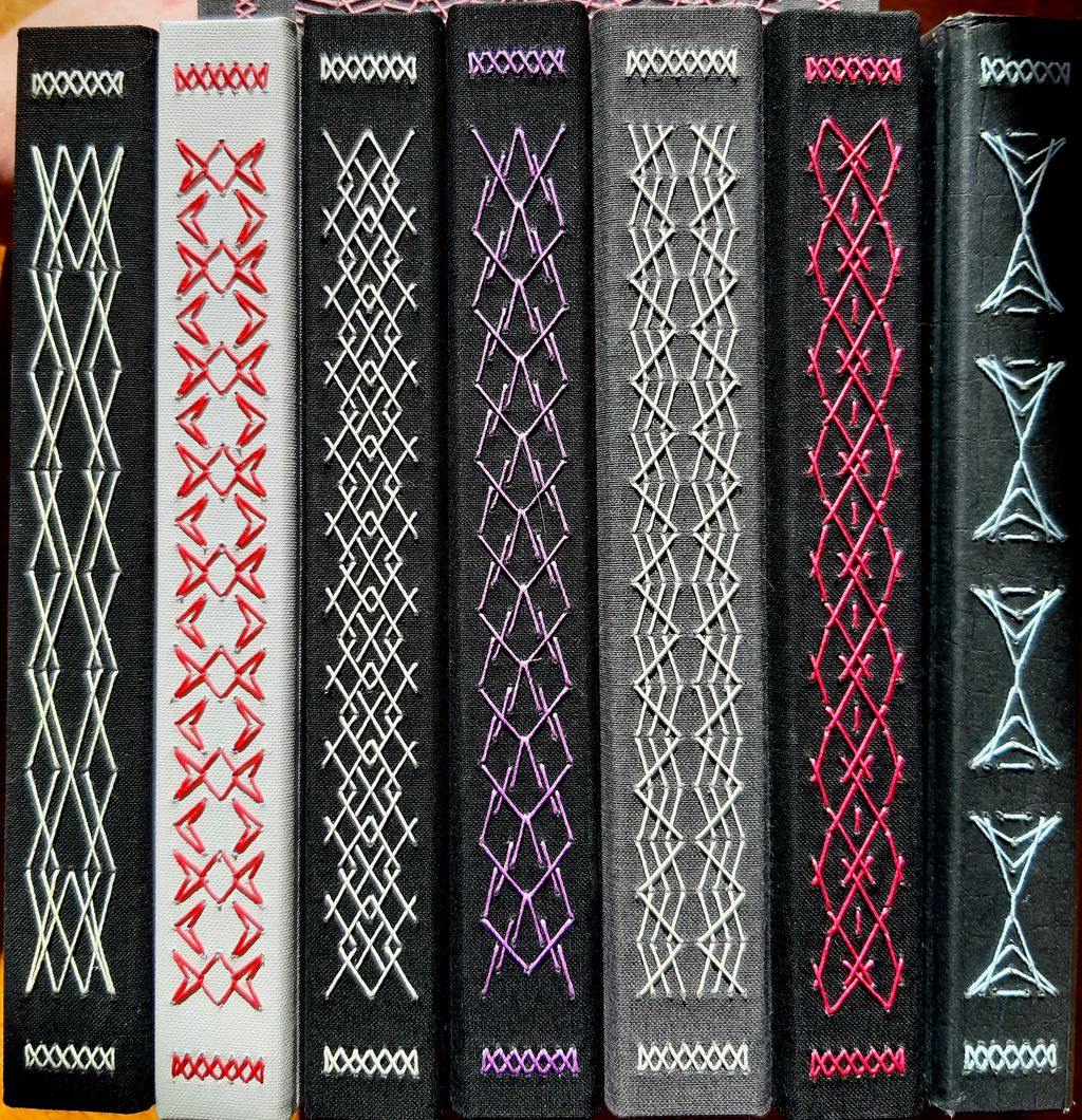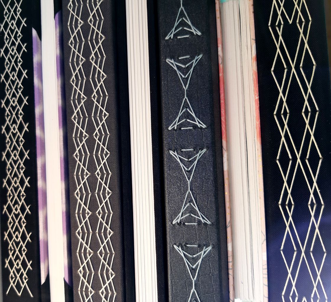 Ci-dessus, ma jolie collection de carnets. J’aime admirer les reliures, toutes différentes et faites avec beaucoup de précisions. Tous ces carnets sont de véritables œuvres d’art.
