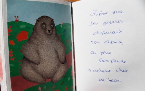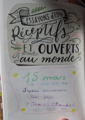 - petit carnet A6 pour m’autoencourager et me montrer que la vie est belle et qu’il faut toujours voir le bon côté des choses