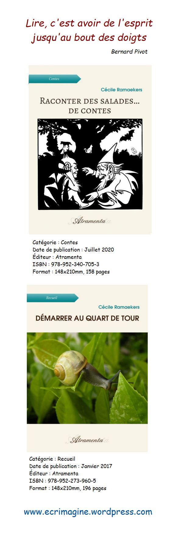 - Pour toute commande de 3 livres : idem au point 1. + un de mes 4 livres au choix en cadeau (clic sur mon compte Atramenta plus bas) avec son marque-page inclus (en fonction du stock disponible)