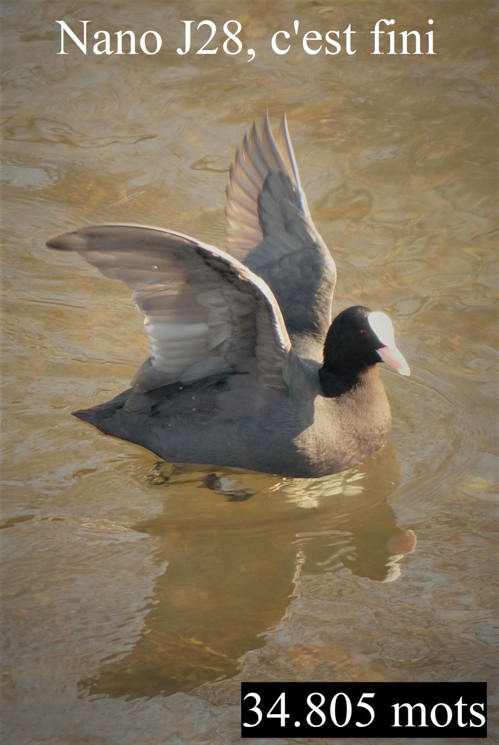Je crois que j’ai un peu bâclé la fin. Mais je ne veux pas y revenir dans l’immédiat. Je vais laisser reposer l’histoire quelques jours, quelques semaines. J’y reviendrai quand j’en aurai envie. Alors, je le lirai d’une traite (ou pas, car il fait 55 pages). Et si je l’aime bien, peut-être que j’aurai envie de le corriger, de l’améliorer.