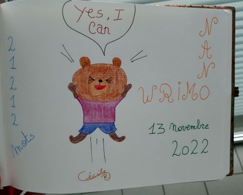 Durant ce mois de novembre, j’ai choisi de jouer au défi d’écriture, le Nanowrimo. Et là aussi, j’ai eu envie de faire un petit dessin rien qu’à cette occasion (dans le carnet « kawaai »).