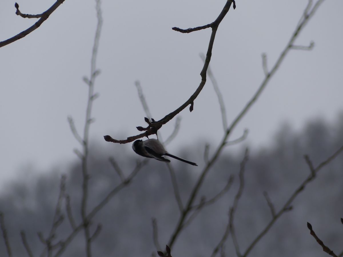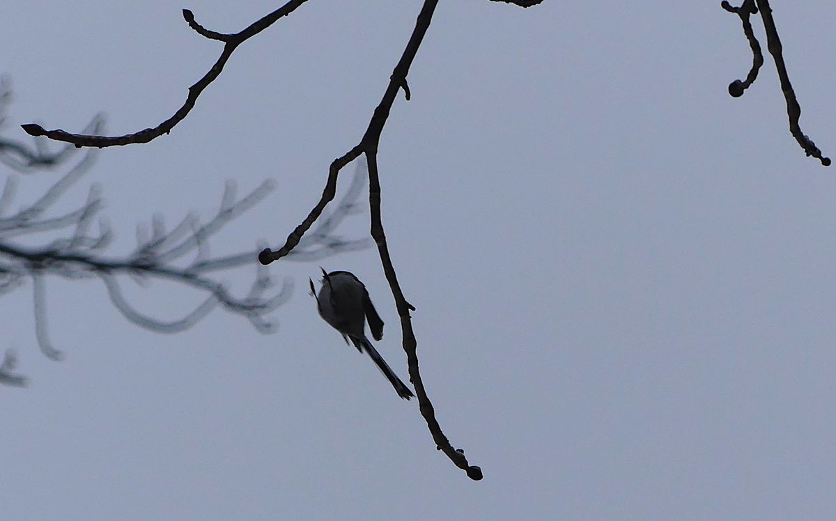 Je commence à rebrousser chemin. Et là, une grappe d’orites à longue queue ** joue aux top model. De véritables acrobates naturelles. Des mini boules de plumes à longue queue. La vilaine habitude du clic compulsif revient très vite. Zut alors. Mais d’un autre côté, je ne crois pas avoir une seule belle photo nette de cet oiseau qui se déplace si souvent en groupe. Alors je fais des photos : une, cinq, dix… Il y en aura bien une dans le lot qui sera belle, non ? Allez, encore quelques-unes puis je les laisse tranquilles. Une réflexion absurde arrive telle une fusée : heureusement que les oiseaux ne perdent pas leurs couleurs ou leur consistance quand on fait trop de photos d’eux, les pauvres, ils seraient mal servis avec moi…