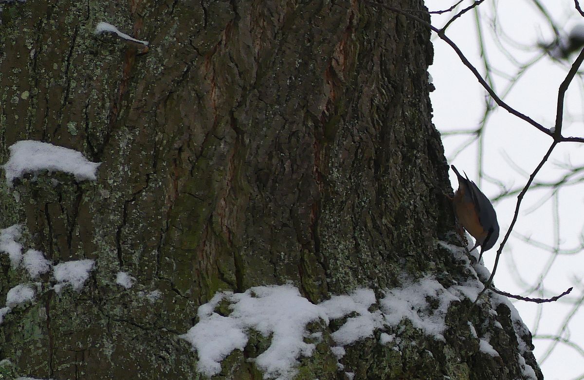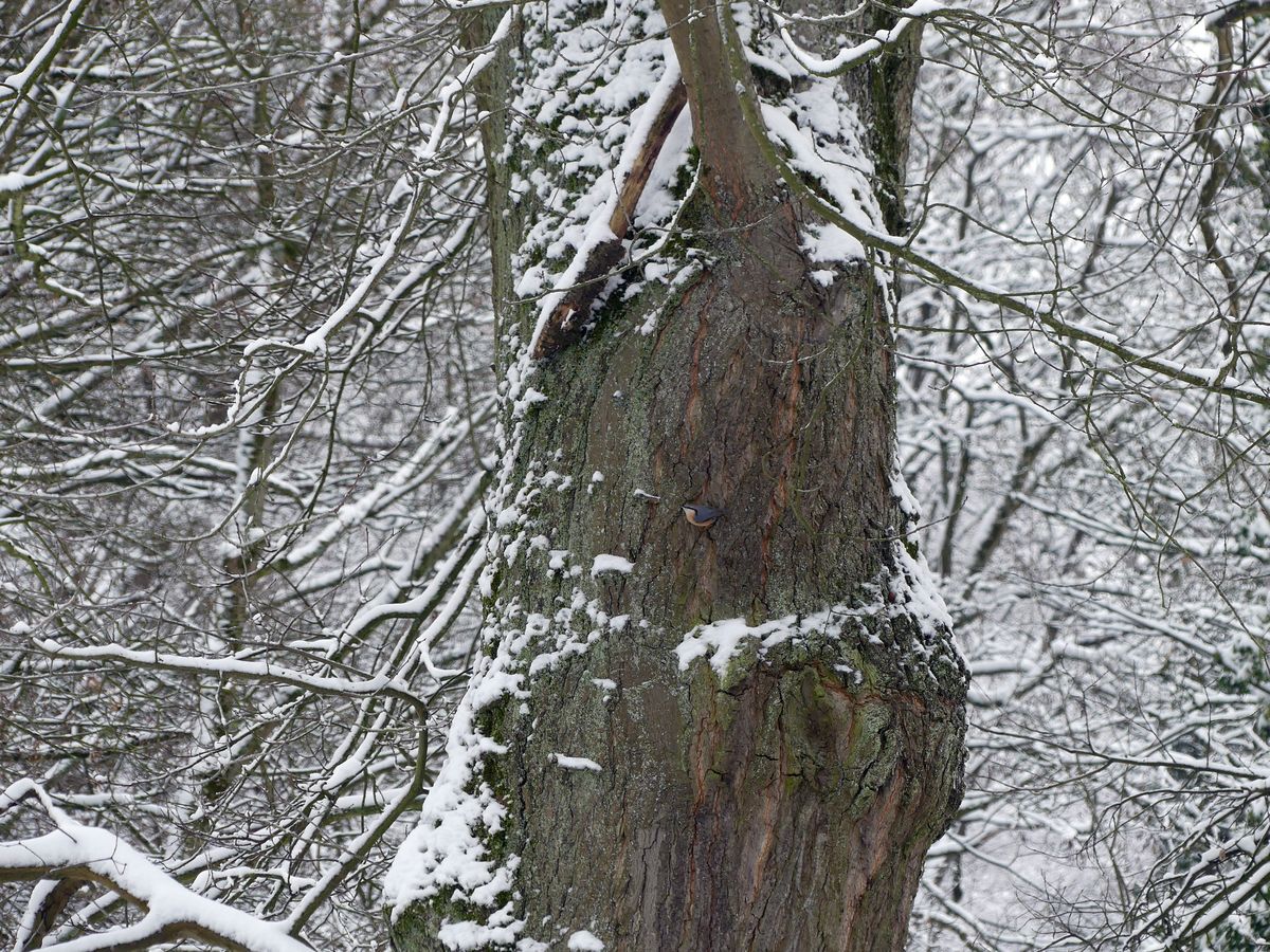 Tiens, voilà une sittelle. De loin. Très loin. « On » fait quand même des photos. Plusieurs en se rapprochant néanmoins de quelques centimètres, décimètres, mètre ! Beaucoup, beaucoup trop de photos. Zut, mes deux cartes mémoires sont pleines. Je profite que la sittelle soit bien occupée à taper du bec sur l’écorce de l’arbre pour supprimer une dizaine de photos de vacances. Pour, sait-on jamais, faire d’autres photos d’un autre oiseau que j’aimerais revoir et surtout photographier : le grimpereau ou mon préféré parmi les mésanges, le huppé. Oui, la mésange huppée.