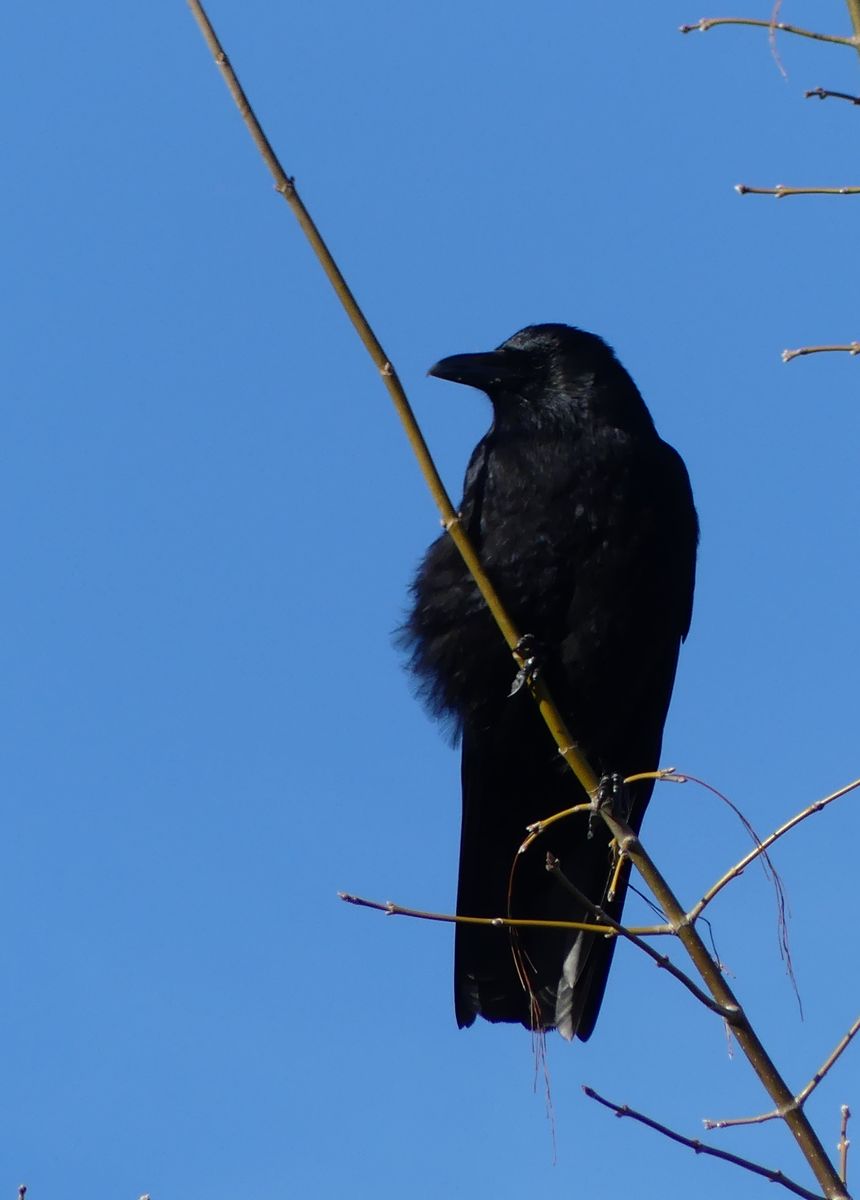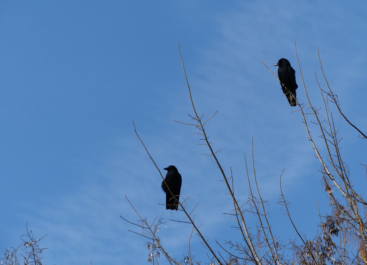 Je ne rentre pas dans cette réserve naturelle, mais la longe. Et là, deux veilleurs sont perchés dans un arbre, à proximité de l’entrée : des corneilles. J’adore les corvidés, même les sombres colorés. Ils sont synonymes d’intelligence, d’adaptation, de ruse, de jeux. Leur cri n’est pas très joyeux, mais reconnaissable. Ces deux individus, dont je ne peux différencier le mâle de la femelle tellement ils se ressemblent, sont arrivés silencieusement. Sans bruit, ils se sont posés. Sans cri, ils m’ont observée, puis ils se sont regardés. Cela m’a donné l’occasion de les approcher pour faire de belles photos !