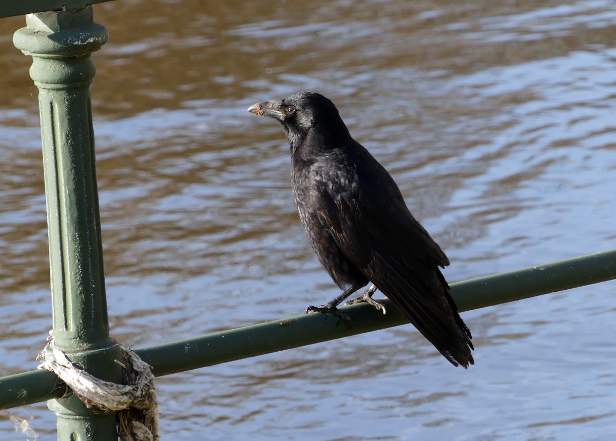 Alors que plusieurs groupes d’humains s’activent pour aller sur l’eau dans leur canoë, j’avise une corneille à moins de dix pas de moi. On se regarde, on se parle silencieusement, on s’évalue. Elle accepte une photo ou deux. Se déplace juste ce qu’il faut pour me laisser passer sans qu’elle doive pour autant décoller, encore une photo, et hop, elle retourne à sa place, le bec plein de boue.