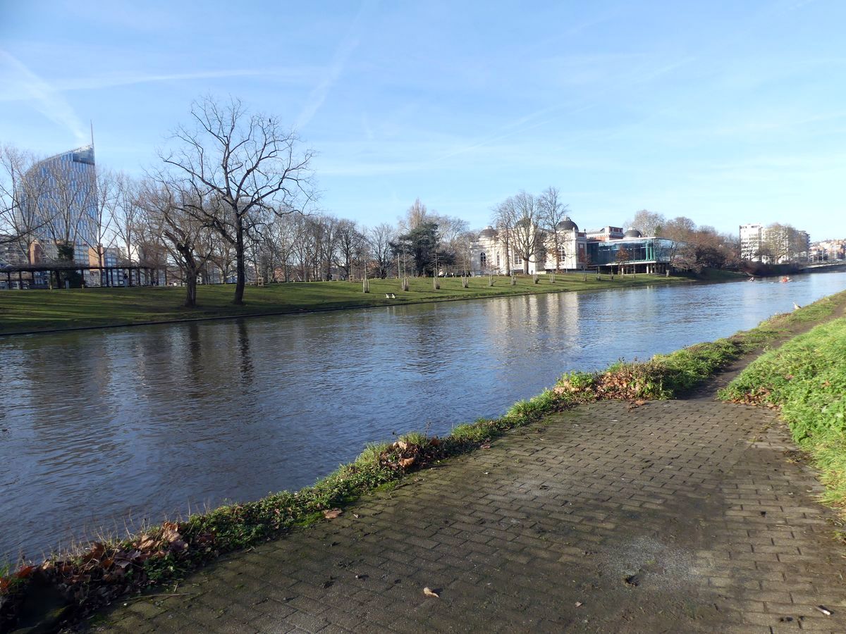 Je n’ai fait qu’une fois ce chemin à pied, en été, quand je lisais à voix haute chez une personne âgée, malvoyante. Elle habitait à un kilomètre à vol d’oiseau de la librairie. Cette fois, je souhaite prendre un autre chemin, passer par un parc dans lequel je ne vais jamais. C’est un détour, mais je longe l’eau. J’adore cet élément : la mer, les rivières, les canaux et autres confluents…