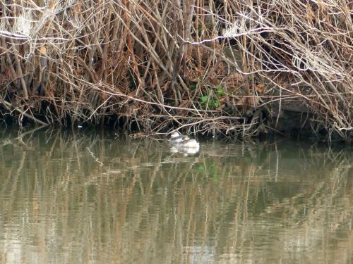 Donc le long de l’eau… Agréable météo avec un beau soleil et une fraîcheur bienvenue en cet hiver perturbé. Mes « petits bouchons » sont là, au même endroit, toujours trop loin, toujours trop petits, mais bon, allez, pour la postérité, on fait quand même une photo. Une seule.