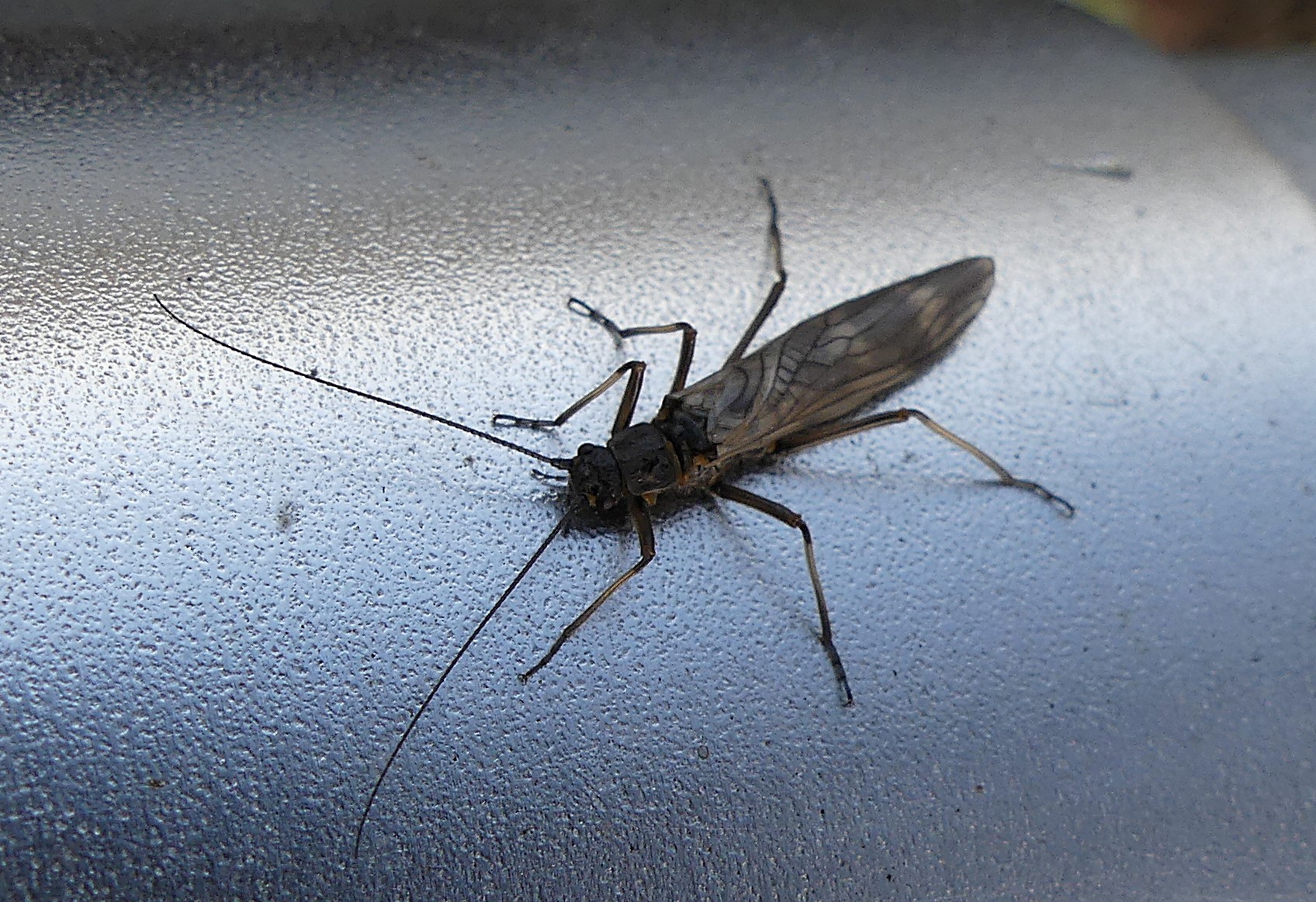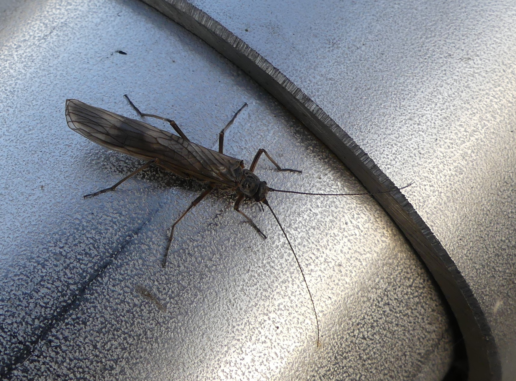 Pour le coup, je ne pose pas les coudes et je sors mon smartphone pour identifier la bestiole : Taeniopteryx schoenemundi. Rien que ça ! Je retiens …pteryx Schoen… la fin du premier nom et le début de l’autre.