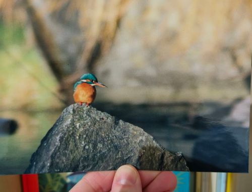 Le Martin-pêcheur figure dans cette liste. J’ai déjà des photos, mais de loin. La meilleure que j’ai de lui date de 2001, quand je travaillais au magasin Nature & Découvertes du shopping de Woluwe Saint-Lambert, à Bruxelles. En face de ce centre commercial : un parc, un étang et… Martin ! À cette époque, je maîtrisais mon appareil photo argentique, un Nikon, avec son zoom Tamron de 200-400 mm et son doubleur de focale. J’assurais grave, comme aurait pu dire ma fille, car toutes mes photos se faisaient à main levée ou objectif posé sur une pierre, une branche, un mur, une grille. Mais regardez quelle jolie photo c’était à cette époque ! (Je l’ai retrouvée il y a quelques jours, j’en suis toute émue.) C’était le 23/01/2001 ! Martine, une femelle reconnaissable grâce à sa mandibule inférieure orange.