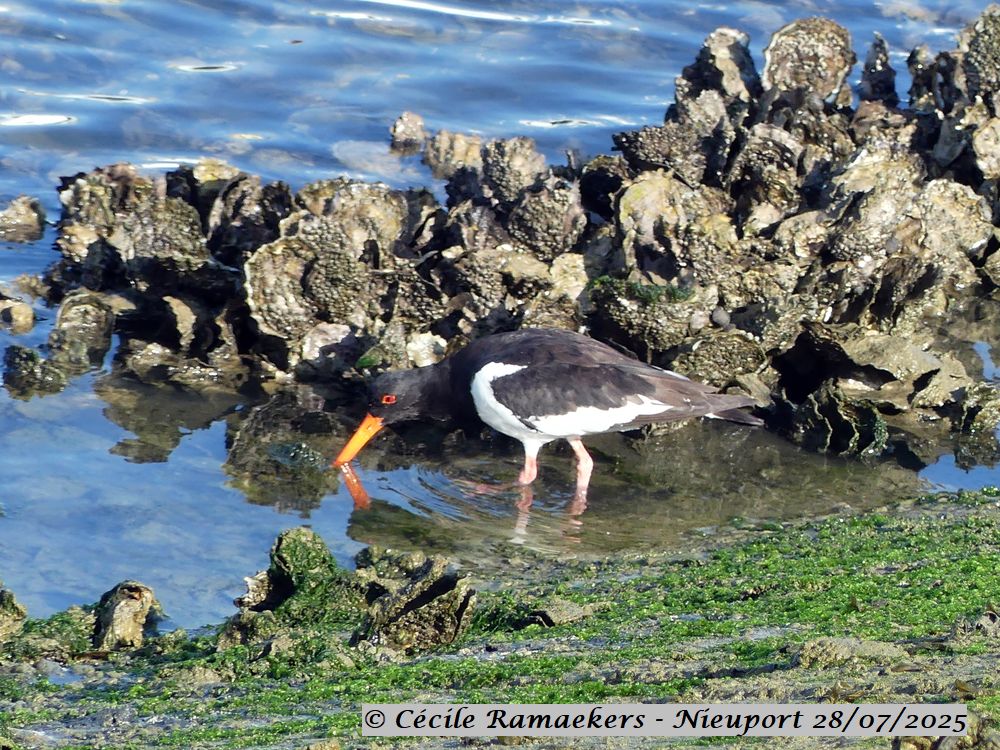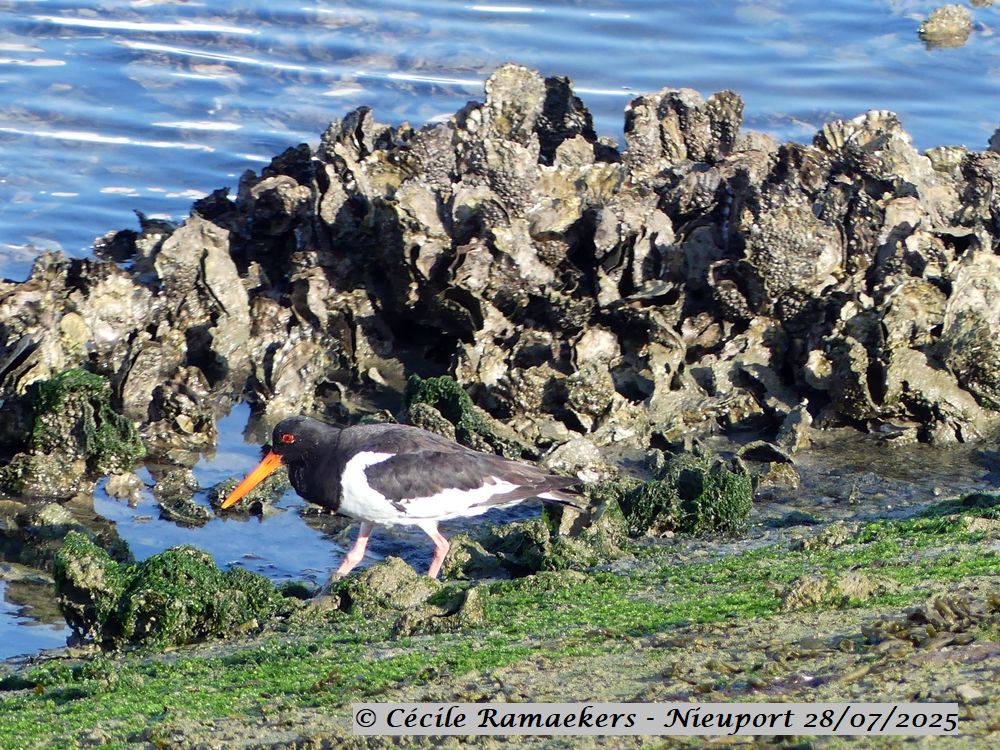 J’entends des Huitriers-pie. Ces échassiers noir et blanc (comme une pie), ont un bec, des yeux et de longues pattes rougeoyantes. Leur cri aigu me parvient distinctement (j’ai une légère déficience auditive pour les sons graves, les aigus me restent). Je me dis que ce serait beau de les photographier en vol : j’ai déjà de beaux portraits, il me manque le mouvement. Comme leur nom l’indique, ces oiseaux se nourrissent principalement d’huîtres !