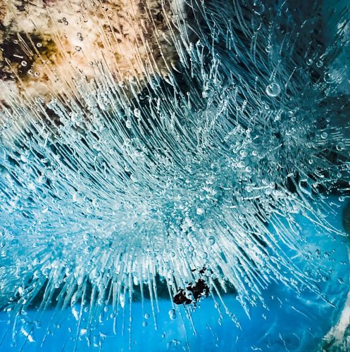Tout à coup, je le vois. La voit. Une flèche bleue. En vol. Elle fonce. Le Martin-Pêcheur a vu un poisson nager dans le petit étang, à travers la vitre d’un bloc de verre. Le choc est inévitable. J’assiste impuissante à l’accident. PAF ! J’attends une ou deux secondes qui me semblent interminables. Va-t-il se relever ? S’en remettra-t-il ? Il ne s’envolera pas. Il est sonné. Vite ! Vite ! Je vais le retrouver. Je pousse des coudes. Je demande pardon. Personne ne se soucie de moi. Et encore moins de l’oiseau inconscient qui traîne par terre.