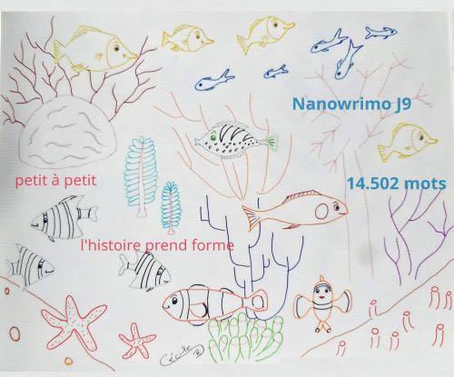 Le Nano ! C’est marrant, car en fait, je n’y pense pas tant que ça. D’habitude, quand je suis dans une histoire, dans un texte que j’écris, j’y pense jour et nuit, nuit et jour. Je pense à mes personnages en mangeant, je rêve d’une situation la nuit, une image, une couleur, un mot me fait penser à eux. Mais pas cette fois-ci ! Je me suis « conditionnée » pour n’y penser que quand j’ouvre mon ordinateur. Quand l’ordi est fermé, je ne m’intéresse plus à cette histoire, à mes personnages que je créé. Peut-être parce que je n’y crois pas vraiment ?