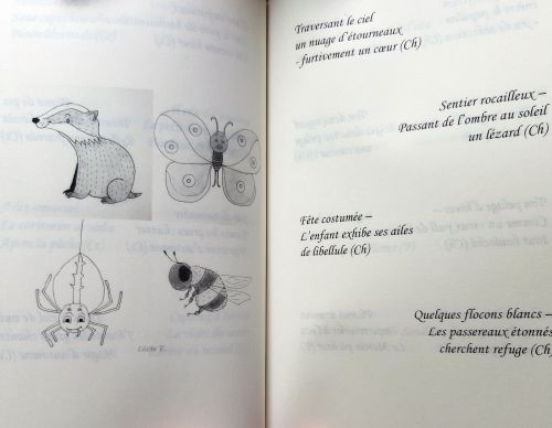 Ce petit livre d’une soixantaine de pages tient entre ses pages la créativité et la passion de trois femmes. Une centaine de haïkus (petits poèmes qui nous viennent du Japon), une poignée d’aquarelles et quelques petits dessins en noir et blanc se partagent la place dans ce livre.