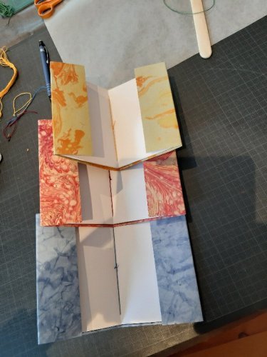 Anne, très pédagogue et d’une patience d’ange nous a guidé pas à pas pour réaliser nos petites merveilles de carnets.