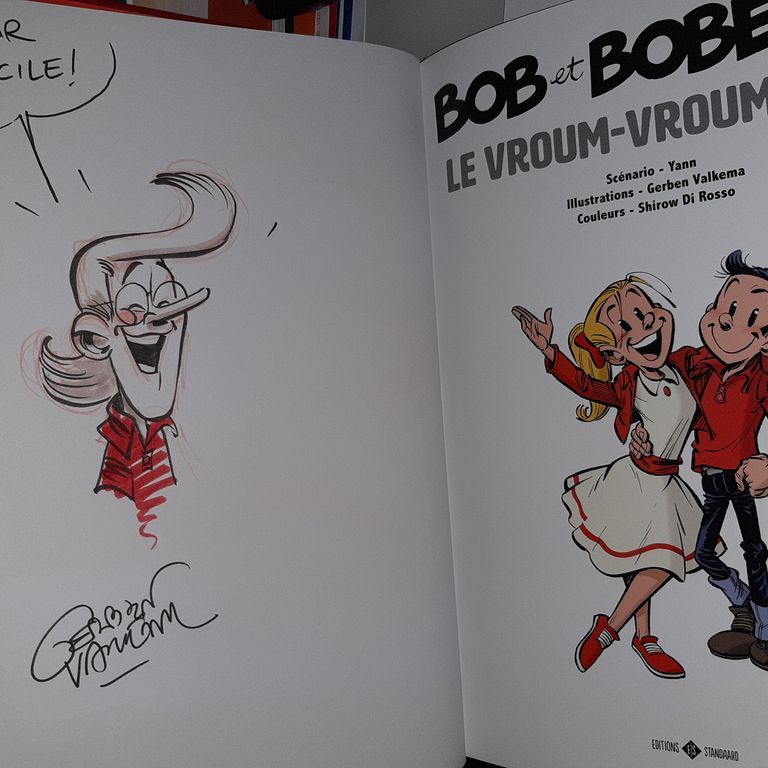Lors de chaque AG, deux invités d’honneur dédicaces des albums. En 2021, j’ai eu l’immense plaisir de découvrir le scénariste des albums, Peter Van Gucht (et excellent dessinateur) ainsi que Gerben Valkema, le dessinateur du dernier album hommage à Bob et Bobette.