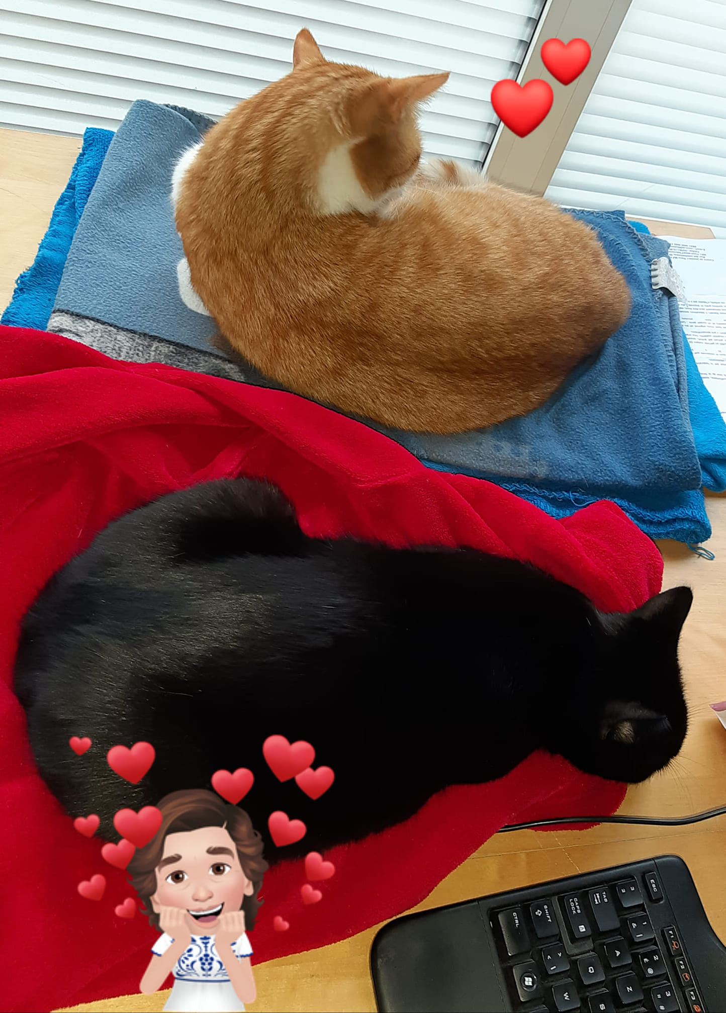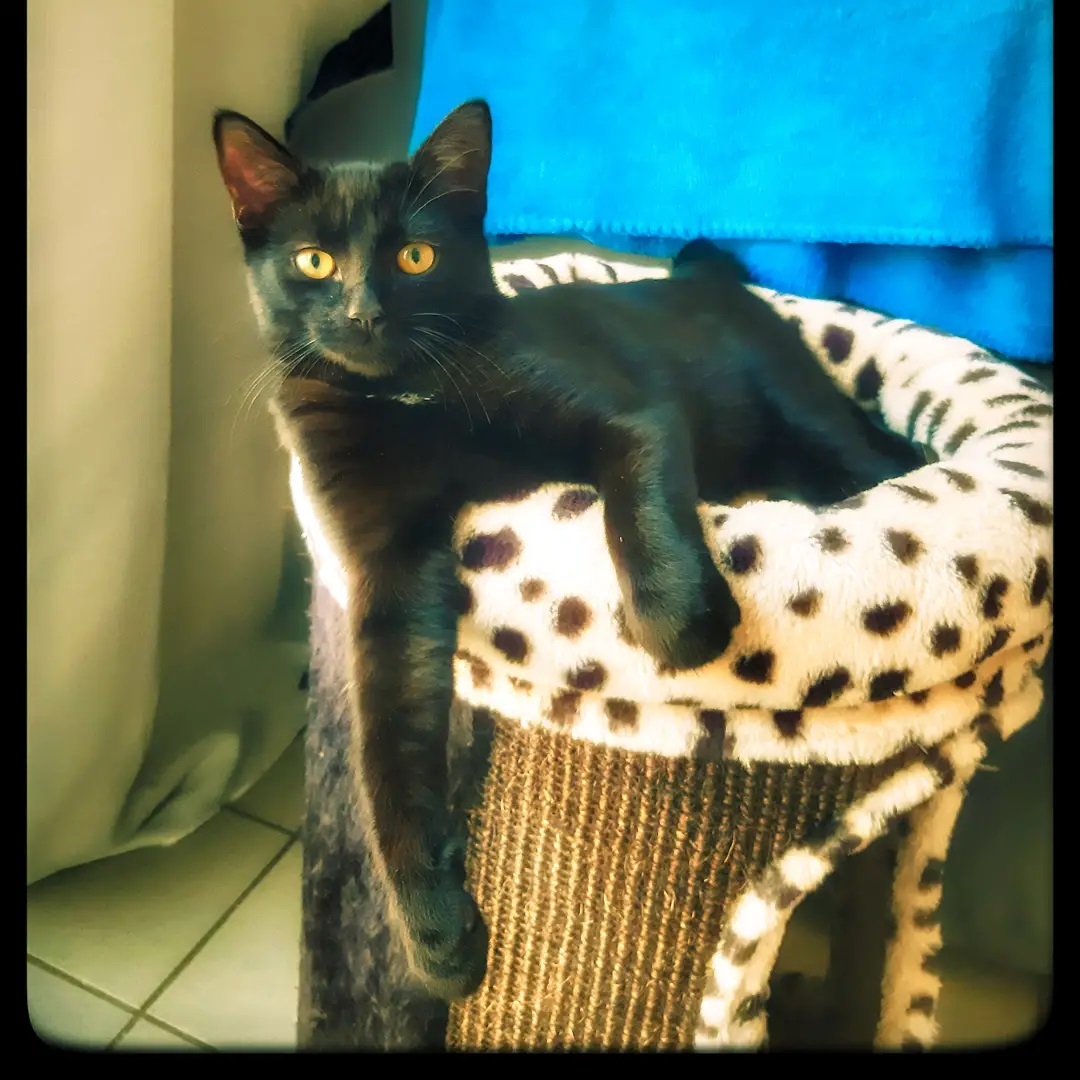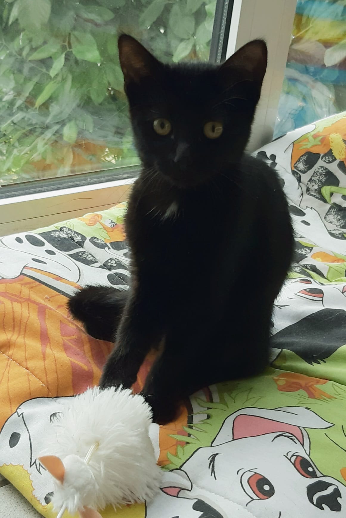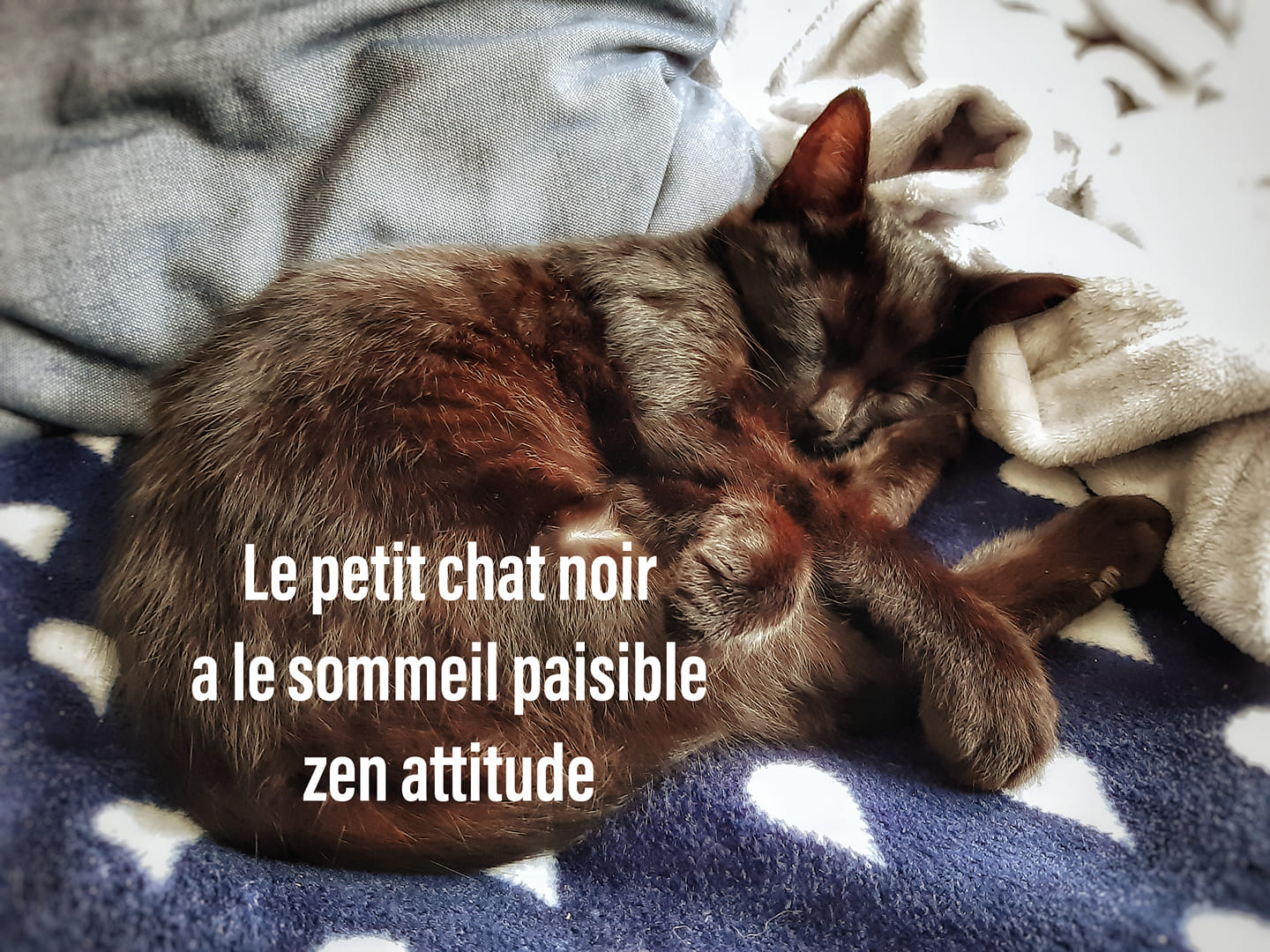 Cet été, nous avons aussi eu la surprise et la joie d’accueillir chez nous un troisième chat. Le chaton baptisé Orion n’était pas prévu au programme des adoptions. Nous avons toujours eu deux chats. Chouna et Vicky sont parties au paradis des chats il y a bientôt deux et trois ans (déjà !). Minos et Héra sont venus dans un premier temps pour tenir compagnie à Vicky qui était toute seule et qui déprimait et dépérissait. Malheureusement, Vicky était déjà âgée et souffrait d’une insuffisance rénale chronique. Les jumeaux se sont donc retrouvés rien qu’entre eux jusqu’à ce que ma fille et moi sauvions une maman chat et sa petite qui tétait en pleine rue. Le lendemain du sauvetage, nous avons pu retrouver la maison de la maman chat et de son chaton et les avons rendus à la petite fille et à son grand-père. C’est là que nous avons appris que personne ne voulait adopter le dernier chaton tout noir. L’enfant voulait garder la maman et la petite sœur tricolore. Et en fait, Orion n’est pas entièrement noir. Il a un petit dessin en forme de flamme, tout blanc, sur le haut du poitrail. Orion est doux, super câlin et gentil. Encore un peu foufou avec les grands, il est castré et identifié par puce électronique, comme les autres. Il vient de fêter ses 8 mois.