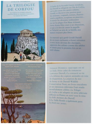 Mon second bonheur a été de recevoir, cet après-midi là, un livre que j’avais commandé à ma librairie naturaliste « Regards Nature » : La trilogie de Corfou, de Gérald Durrell. La libraire l’a tout spécialement commandé pour moi et elle voulait me faire la surprise. Adorable Marie ! Merci !