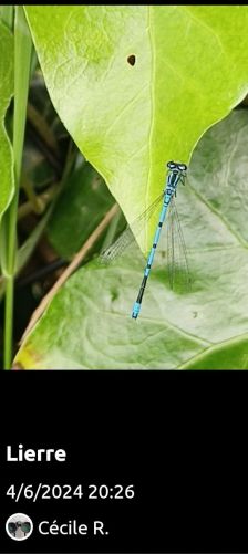 Et dernièrement (hier), j’ai voulu aller trop vite et l’application a reconnu à 100% l’espèce photographiée, mais elle a choisi d’identifier la plante plutôt que le magnifique insecte posé sur une de ses feuilles !! J’espère qu’un administrateur va pouvoir corriger cela rapidement, car « mon » Agrion est vachement plus intéressant et plus beau que le lierre 😂