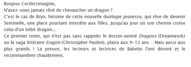 Si ce qu’on dit d’eux dans les livres anciens sont vrai, ce dragon a donc senti que j’aimerais voler avec lui. Je n’ai donc plus qu’à attendre.