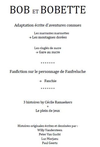 Cette année, pour la prochaine journée des membres, j’ai envie de jouer à ce que j’aime le plus faire : écrire, adapter, inventer des histoires avec mes héros préférés : Bob, Bobette, tante Sidonie, Lambique, Jerôme et le professeur Barabas. Sans oublier la poupée fétiche de Bobette : Fanfreluche.