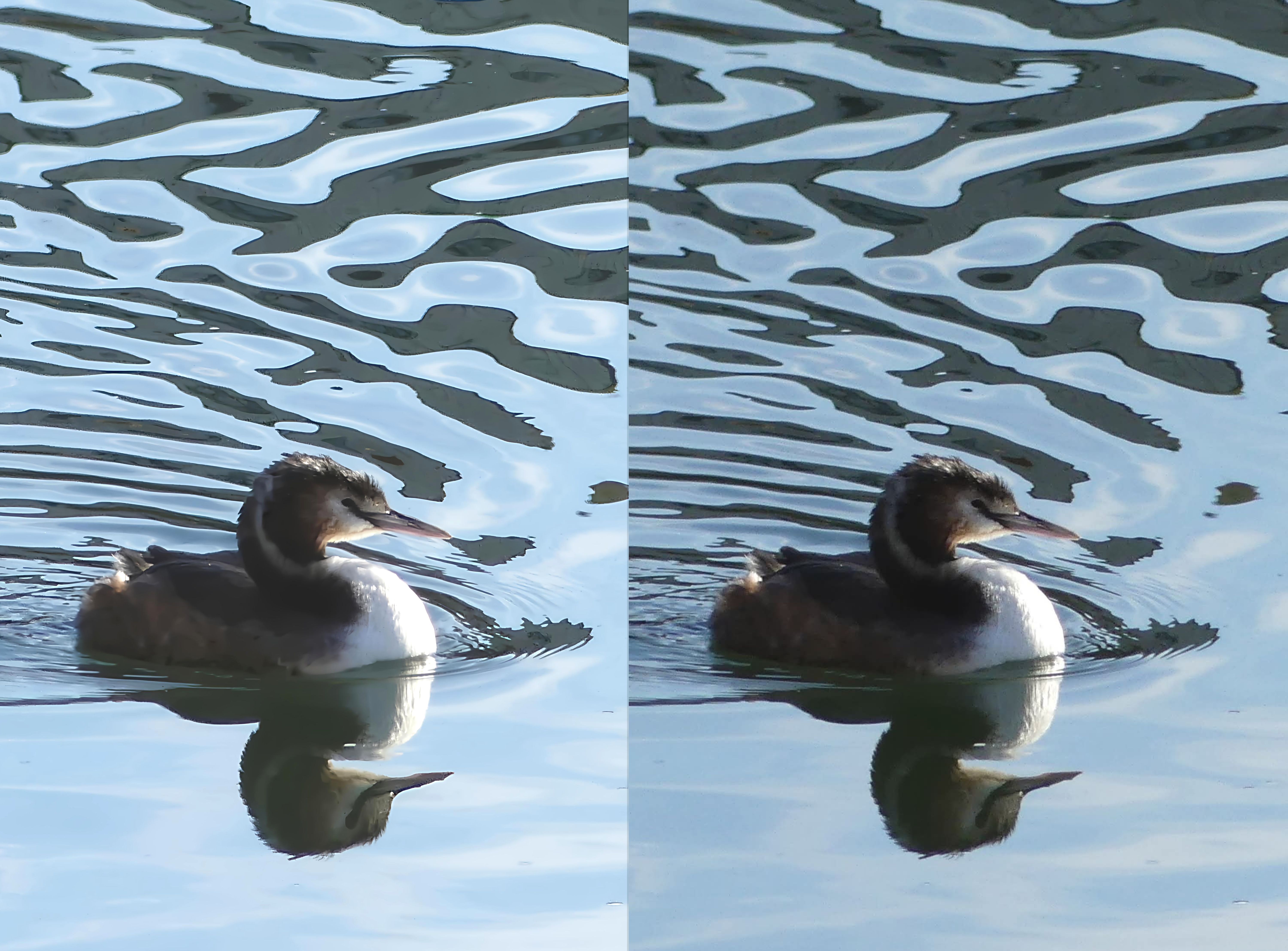 Bon, je trouve que la différence se voyait mieux sur le petit écran de mon smartphone… le plus impressionnant, est le grain en moins dans le gros zoom du Martin-pêcheur. En plus, comme j’ai recadré pour resserrer le sujet, c’est moche, mais moche. Pas grave, je me suis bien amusée à découvrir cette option et je m’en vais voir si ça marche pour une photo tout à fait floue (mise au point sur les branches devant ! )