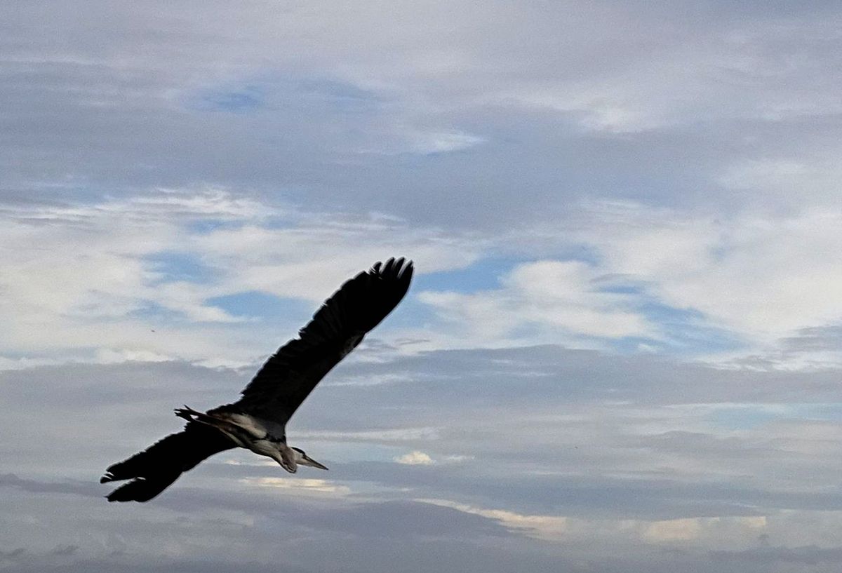 Le héron en vol déploie son grand silence, Et les canetons rient, dansent leur innocence. Le grand cormoran, sur la rive endormie, Étire ses ailes noires comme pages de nuit.