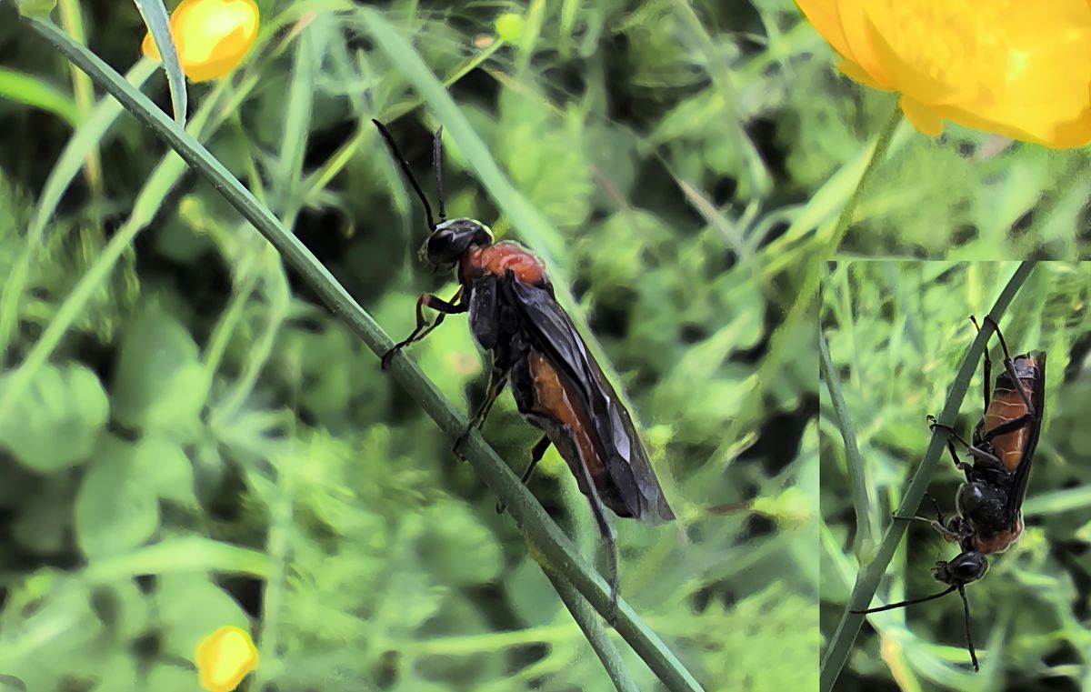 Les Dolerus scintillent, furtifs comme le vent, Tandis que les chenilles s’étirent, lentement, doucement. Le Viorne donne fruit sur un arbre voisin, Et l’ail des ours embaume les creux du chemin.