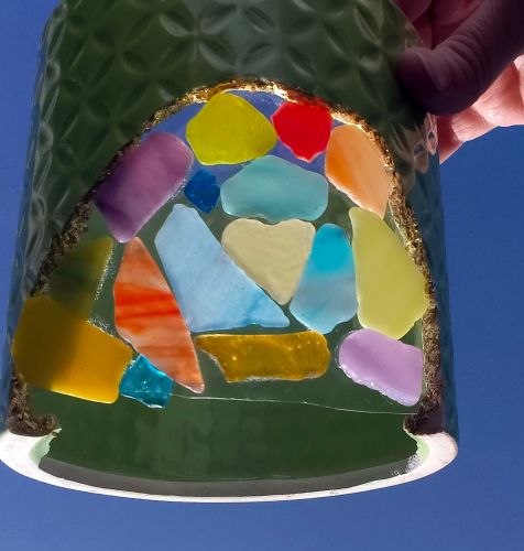 Mon pot fêlé s’est ouvert d’une porte, Et cette ouverture, je l’ai comblée De morceaux de verre colorés. Au centre, un éclat singulier : Un cœur jaune pâle, posé là, Comme un signe, Comme une promesse.