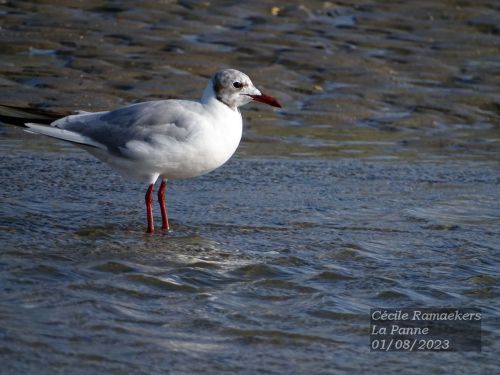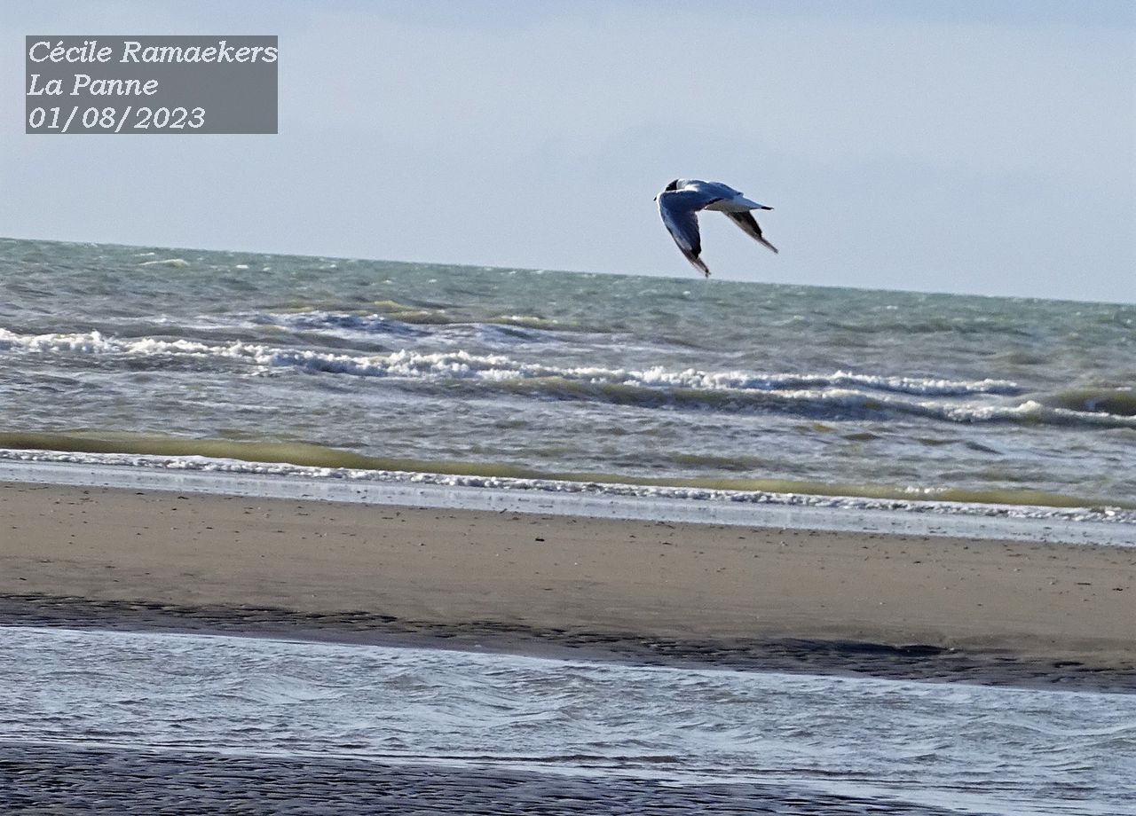 Impressionnant ! La plage est déserte, ou presque. Il n’est pas très tard : 19h. Nous soupons tôt, il est vrai, sans doute que beaucoup de gens se restaurent à l’intérieur. Très vite, j’ôte mes sandales pour sentir le sable sous mes pieds. A une dizaine de mètres, je remarque immédiatement un oiseau près d’une étendue d’eau. Un oiseau de la famille des laridés. Cette famille comporte 22 genres et 103 espèces. La plupart des espèces appartiennent aux goélands, aux mouettes et aux sternes. L’oiseau que je vois est plutôt petit pour un goéland et fin. Cela pourrait bien être une mouette. Quelle chance ! Depuis que j’ai un appareil photo avec un super gros zoom, un bridge de la marque Sony, un Cyber-shot, DSC-Hx400V (2017), je n’utilise plus mes jumelles. En effet, mon appareil photo a un zoom optique de 50x avec un stabilisateur intégré. L’oiseau en question ne semble pas farouche, car un homme se trouve assez proche de lui et il ne s’en va pas. L’oiseau marche (poussé par le vent) dans une flaque d’eau de mer. Je le vise dans un premier temps pour tenter de l’identifier. C’est bien une mouette, chouette ! Mais les couleurs sur sa tête sont un peu particulières. Les mouettes rieuses, celles que l’on voit la plupart du temps, ont à l’âge adulte un capuchon chocolat sur la tête. Cette caractéristique est présente uniquement pour les adultes qui nichent (printemps-été), c’est ainsi qu’on les reconnaît facilement. Les adultes qui ne nichent pas (et en automne-hiver) en sont dépourvu, ils ont la tête toute blanche avec une petite tache noire au niveau de chaque oreille et près des yeux. Les jeunes ont des taches brunâtres sur la tête et selon leur âge, plus ils sont jeunes, plus ils ont du brun dans leur plumage.