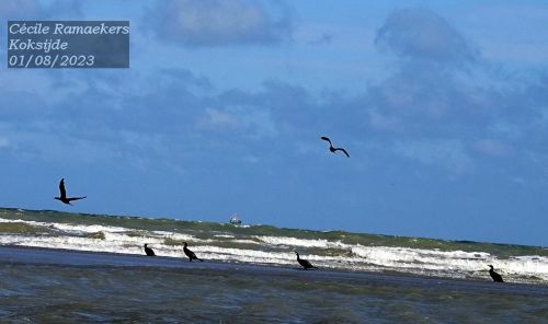C’est précisément lors de cette balade que j’ai pu voir, et photographié bien sûr, un Huitrier-pie (« pie » car il est noir et blanc comme « notre » Pie bavarde et « huitrier », car il se nourrit principalement d’huitres !), des chevaliers (de deux espèces différentes je pense), un Courlis cendré (et même plusieurs, de loin), quatre Hérons cendré, une Aigrette garzette (que je n’avais pas vue au début, et qui pourtant était plus près que les hérons !), un Faucon crécerelle en vol, un Faucon épervier aussi en vol et, enfin, trois Vanneaux huppés. J’ai failli oublier : des Grands cormorans, sur piquet, sur la plage, en vol, … (retrouvez toutes les photos d’oiseaux dont je parle ici, à la fin de l’article)