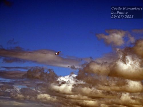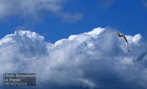Le temps n’est pas extraordinaire. Pas mal de pluie, presque quotidienne, et du vent. Beaucoup de vent. Vent véritablement violent, qui renverse les poubelles des restaurants sur la dune, qui fait courir les grains de sable dans nos yeux, qui freine nos balades quand on avance contre lui. Mais ce vent permet de joyeuses observations ornithologiques : des goélands qui planent au-dessus de votre tête pour voir si vous n’auriez rien à becqueter et des mouettes qui font elles aussi du surplace au-dessus d’un bras de mer. Elles sont portées et soutenues par ce vent, ailes ouvertes. Quand elles zyeutent un repas, zou, les ailes se rabattent et elles tombent tout en délicatesse. Pic, elles picorent leur nourriture et vlan, elles rouvrent leurs ailes. Elles remontent aussitôt à la verticale. Fascinant.