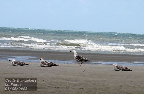 Depuis que nous sommes arrivés, malgré le vent, j’entends avec bonheur le rire des goélands. Ils sont marrants à donner de la voix régulièrement. J’aime les écouter, les regarder. Je peux fermer les yeux et me perdre dans cet instant rien qu’à moi. Ces oiseaux typiques du littoral, nous les rencontrons parfois à l’intérieure des terres, en ville, à proximité d’un canal ou d’un étang. Chez moi (Liège), ce sont souvent des mouettes que j’observe. Ici, à la mer du Nord, c’est plutôt l’inverse : les goélands sont bien plus nombreux et présents que les mouettes.