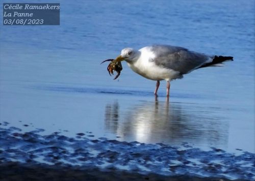 Enfin, l’avant-dernier soir, j’ai eu la chance de pouvoir observer, sur la plage de La Panne une étoile de mer mal en point qui a fini par servir de repas à un Goéland cendré solitaire, ainsi qu’un Bernard l’Hermite.