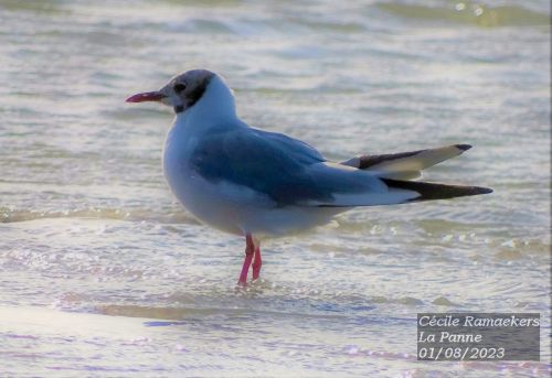 Impressionnant ! La plage est déserte, ou presque. Il n’est pas très tard : 19h. Nous soupons tôt, il est vrai, sans doute que beaucoup de gens se restaurent à l’intérieur. Très vite, j’ôte mes sandales pour sentir le sable sous mes pieds. A une dizaine de mètres, je remarque immédiatement un oiseau près d’une étendue d’eau. Un oiseau de la famille des laridés. Cette famille comporte 22 genres et 103 espèces. La plupart des espèces appartiennent aux goélands, aux mouettes et aux sternes. L’oiseau que je vois est plutôt petit pour un goéland et fin. Cela pourrait bien être une mouette. Quelle chance ! Depuis que j’ai un appareil photo avec un super gros zoom, un bridge de la marque Sony, un Cyber-shot, DSC-Hx400V (2017), je n’utilise plus mes jumelles. En effet, mon appareil photo a un zoom optique de 50x avec un stabilisateur intégré. L’oiseau en question ne semble pas farouche, car un homme se trouve assez proche de lui et il ne s’en va pas. L’oiseau marche (poussé par le vent) dans une flaque d’eau de mer. Je le vise dans un premier temps pour tenter de l’identifier. C’est bien une mouette, chouette ! Mais les couleurs sur sa tête sont un peu particulières. Les mouettes rieuses, celles que l’on voit la plupart du temps, ont à l’âge adulte un capuchon chocolat sur la tête. Cette caractéristique est présente uniquement pour les adultes qui nichent (printemps-été), c’est ainsi qu’on les reconnaît facilement. Les adultes qui ne nichent pas (et en automne-hiver) en sont dépourvu, ils ont la tête toute blanche avec une petite tache noire au niveau de chaque oreille et près des yeux. Les jeunes ont des taches brunâtres sur la tête et selon leur âge, plus ils sont jeunes, plus ils ont du brun dans leur plumage.