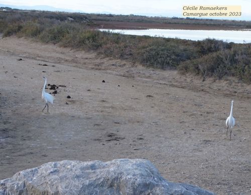 Les deux derniers kilomètres ont été fait en mode automatique. Je ne me suis plus jamais arrêtée pour faire une photo. Si je m’arrêtais, je n’aurais pas pu redémarrer. Mon talon était finalement aussi douloureux que mes cuisses, que mes genoux, que mes hanches et que mon dos. J’ai eu une vague pensée pour le livre de Stephen King : Marche ou Crève. Enfin, l’observation de deux Aigrettes garzette occupées à se draguer (ou étaient-ce des jeunes qui jouaient ??) m’a permis d’oublier momentanément les douleurs. Car je me suis arrêtée pour les regarder, pour les photographier et… j’ai réussi à reprendre la marche. Il ne restait que 15 petites minutes avant de m’écrouler dans notre chambre.