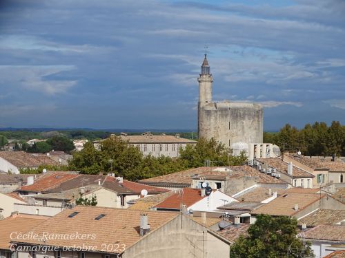 Le petit tour au marché + faire le tour du rempart = 6 km de marche. Eh oui ! Quand même ! Et sous un magnifique soleil. Si j’avais prévu tout pour la photo, j’avais oublié d’emporter avec moi une casquette. Ce fut pour moi l’occasion d’en acheter une spéciale, de là-bas, avec le symbole de la Camargue, un cheval et un taureau de part et d’autre de cette croix particulière. Pour connaître la signification de ce symbole, je vous invite à aller sur ce site L’Auberge cavalière.