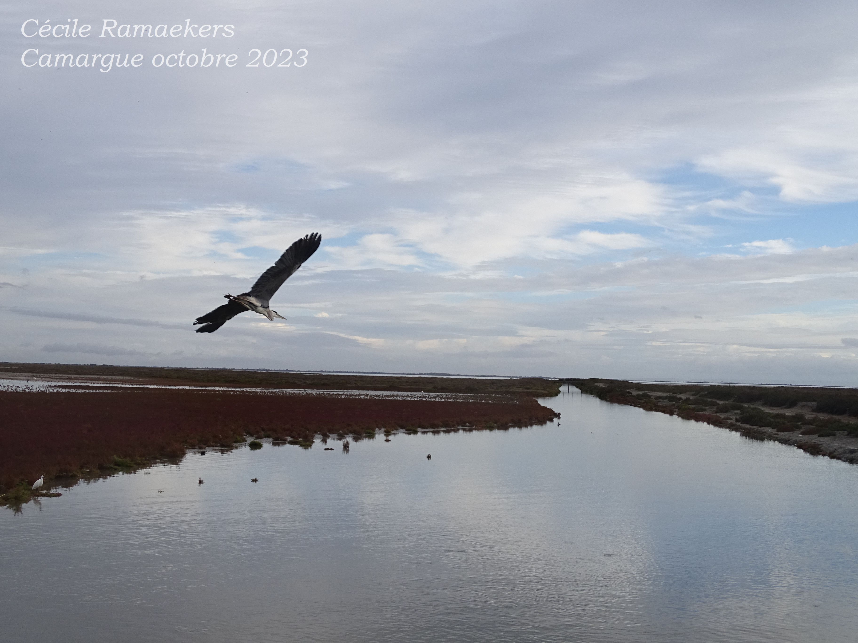 Jeudi 26/11/2023. Pour notre dernier jour sur place, il me fallait choisir le lieu à visiter, la balade à faire, les oiseaux à observer. J’ai toujours eu du mal à choisir. Depuis le début, j’espérais secrètement pouvoir (re) voir le fameux Héron pourpré et pourquoi pas, essayer de photographier un rapace, Milan noir ou Milan royal, que j’ai l’occasion de voir en nombre haut dans le ciel ? Alors, j’ai épluché mon guide de voyage et j’ai choisi la Réserve naturelle régionale du Scamandre et ses marais boisés de tamaris. Le livre mentionne que c’est l’occasion de découvrir pas moins de 9 espèces de hérons !! Neuf ! Mais nous sommes au automne, ce n’est pas la saison idéale pour tous les observer, certains sont déjà partis en migration. Et avec un peu, beaucoup, de chance, j’aurai aussi l’occasion d’observer un ou deux milans.