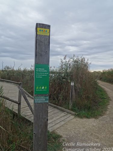 Nous étions frais et dispo et avions envie de faire cette balade depuis l’hôtel, pour ne pas prendre la voiture pour si peu. Rapidement, des pancartes annoncent les distances pour rejoindre le phare de la Gasholle et Saintes Maries de la mer. Rapidement, on comprend qu’on ne fera que le phare de la Gasholle et que nous n’irons pas plus loin. Rapidement, on réalise que ça va vraiment nous prendre toute la journée, à pied. Surtout, que moi, amoureuse inconditionnée des oiseaux, je m’arrête souvent pour admirer la faune aviaire, prendre quelques photos, profiter à fond de l’instant offert. Mon amoureux fait une blague et dit que la balade annoncée de 6 heures va prendre le double du temps avec moi qui m’arrête pour photographier les piafs et les paysages magnifiques !